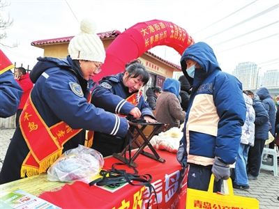 本报讯 1月19日上午,青岛市市北区大港街道长春路社区,在沈阳路46号公交驾校门前的空地上开展“主题党日服务大集”活动,把民生服务送到百姓身边。