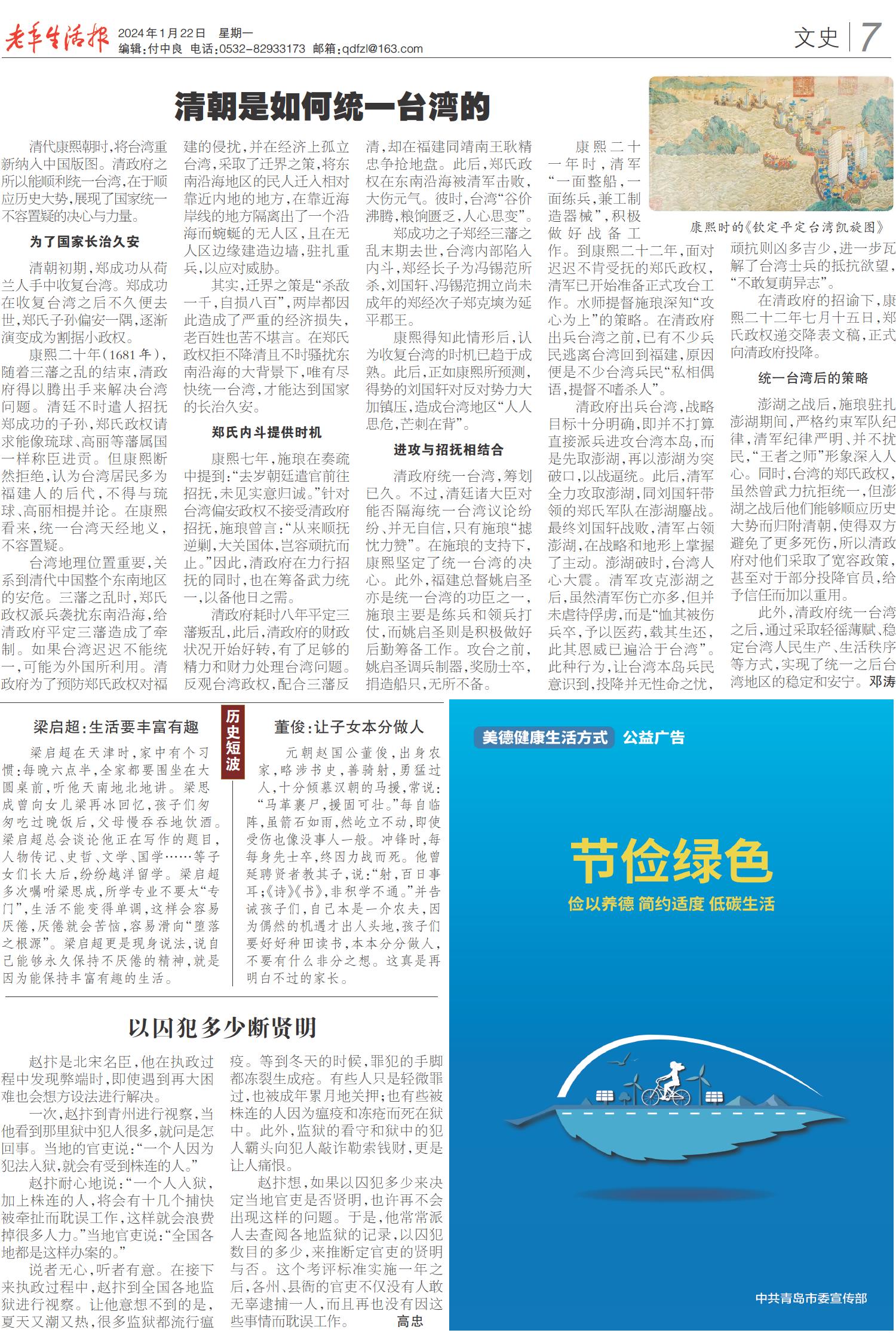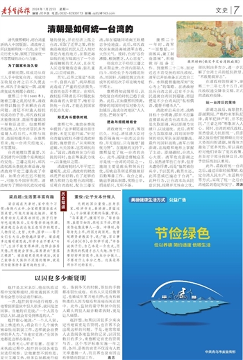 此外,清政府统一台湾之后,通过采取轻徭薄赋、稳定台湾人民生产、生活秩序等方式,实现了统一之后台湾地区的稳定和安宁。邓涛