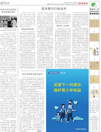 1946年3月1日,黄河花园口堵口工程开工典礼举行,国民党政府以“拯救黄泛区人民”为名,暗藏“以水代兵”水淹解放区的祸心。从1946年初到1947年初,中共与国民党政府围绕黄河归故问题进行了反复斡旋与艰苦谈判。