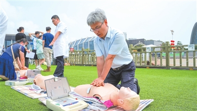 为积极响应社会关切,提升市民急救知识与技能普及率,鼓励更多人会帮助、能帮助、敢帮助挽救他人的生命。7月13日上午,由青岛市医学会科学普及分会、青岛市市立医院、中挪创新中心主办开展的“心肺复苏(CPR)与自动体外除颤仪(AED)使用”公益培训体验活动在青岛奥帆中心举行。活动吸引了众多市民参与,共同学习如何在紧急情况下挽救生命。