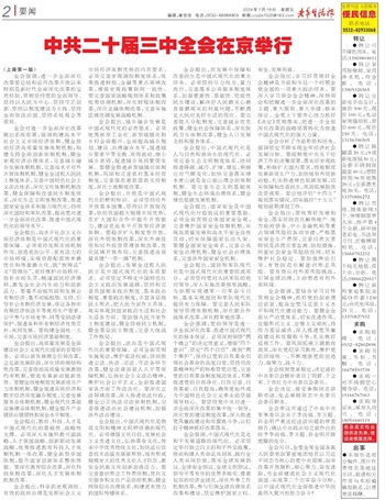 新华社北京7月18日电 中国共产党第二十届中央委员会第三次全体会议公报