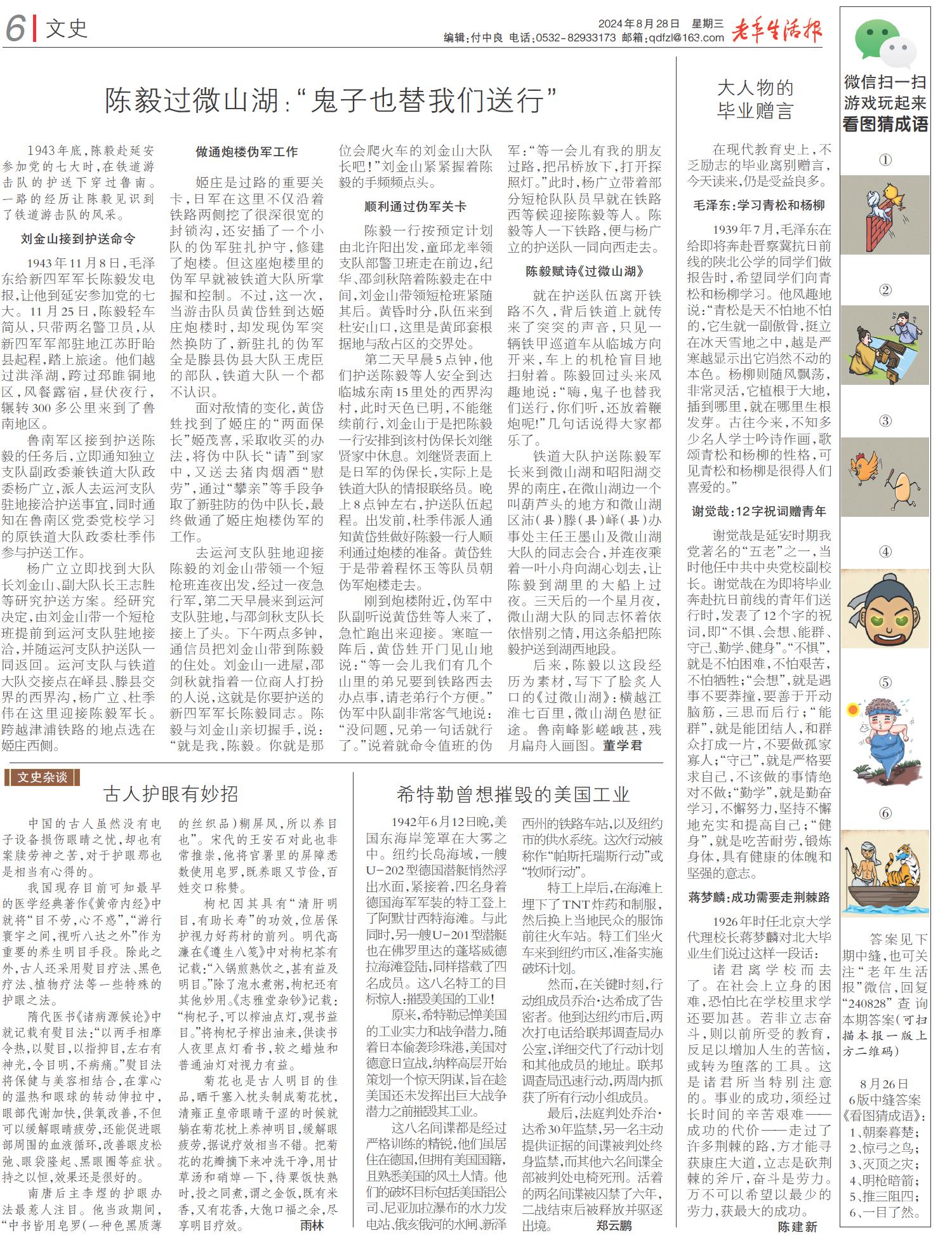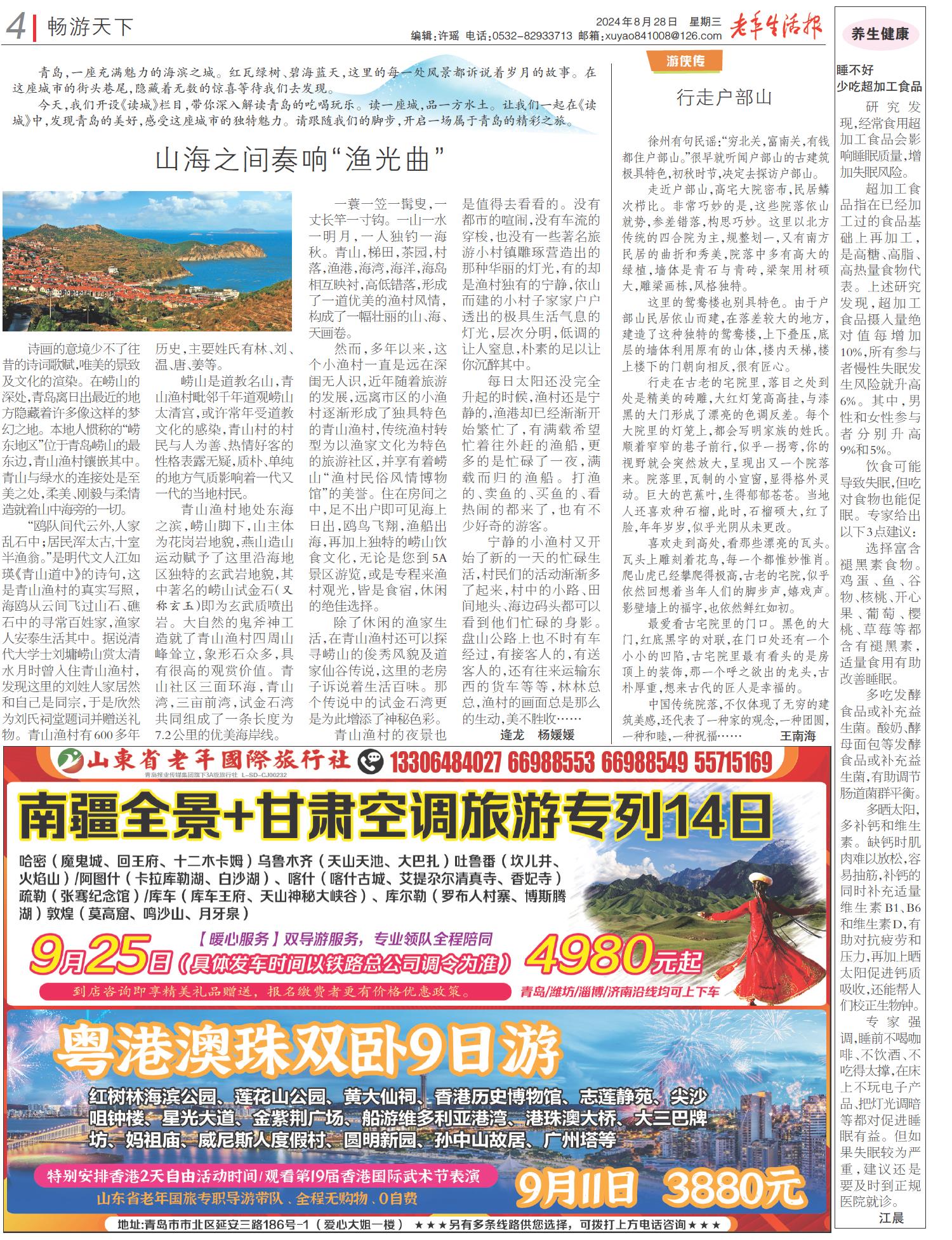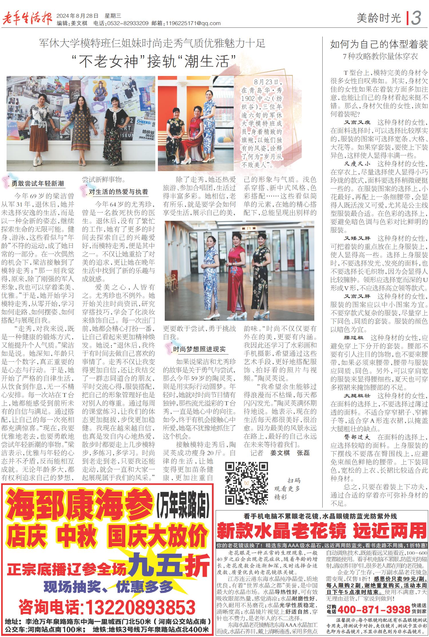 A01 头版 A02 新闻热线 A03 美龄时光 A04 畅游天下 A05 养老 A06 文史 A08 特别报道