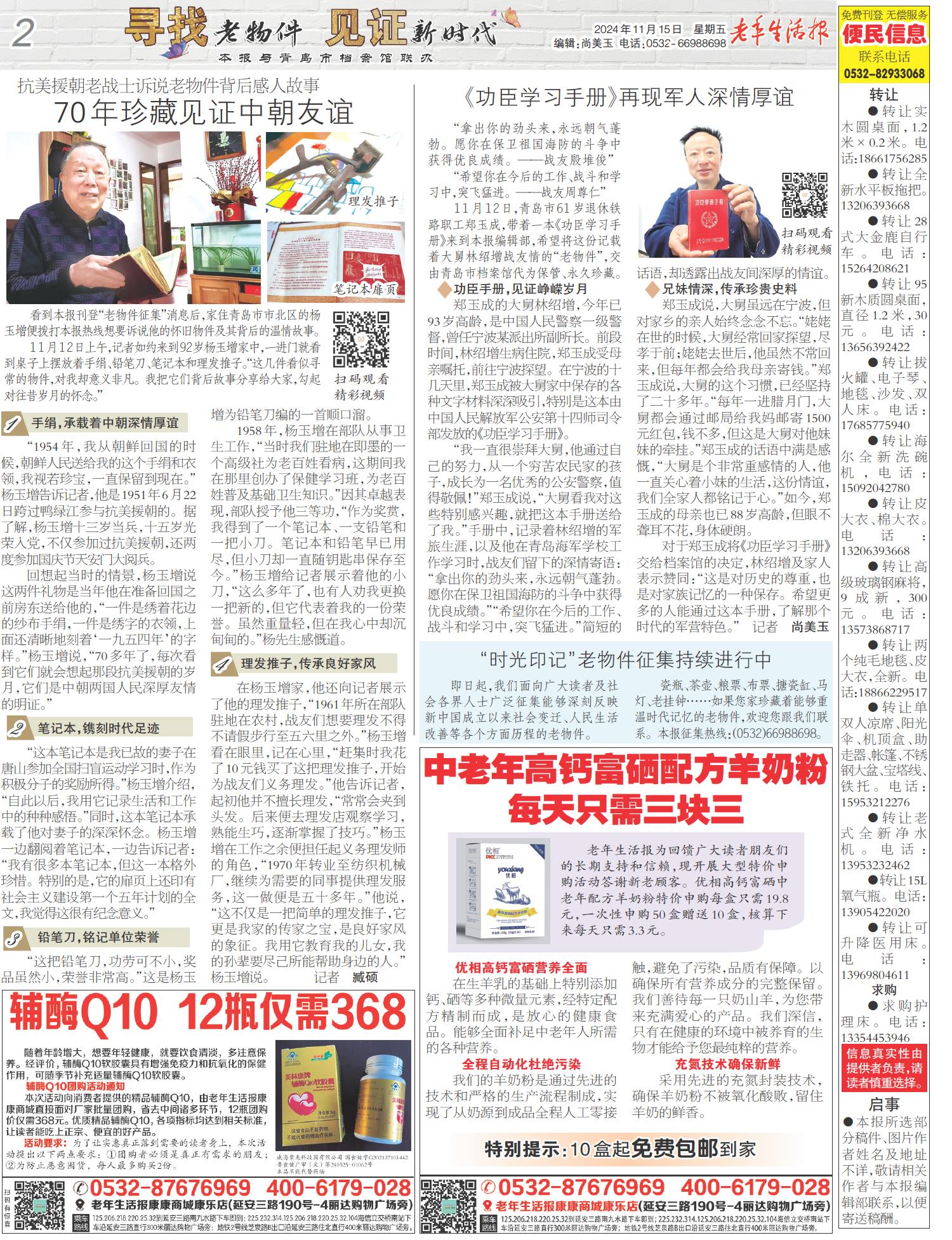 A01 头版 A02 寻找老物件 见证新时代 A03 人物 A04 讲述 A05 婚恋 A06 文史 A07 延年益寿 A08 家风