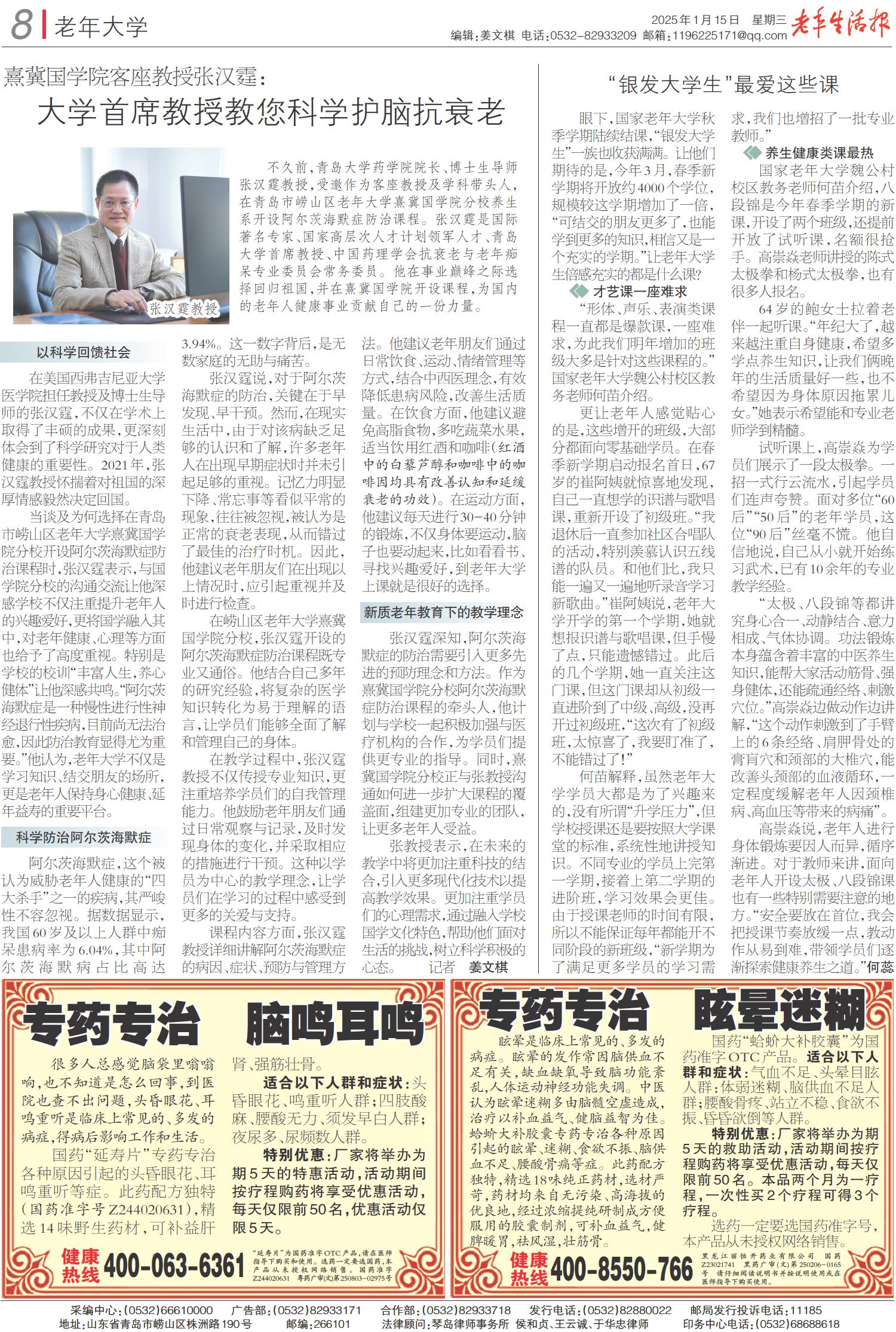 A01 头版 A02 新闻 A03 延年益寿 A04 畅游天下 A05 养老 A06 文史 A07 金融理财 A08 老年大学