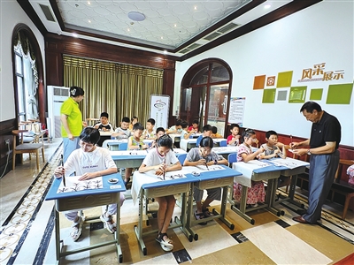 “城阳银领先锋”棘洪滩街道老干部志愿服务队,开展假期青少年能力提升训练营活动。