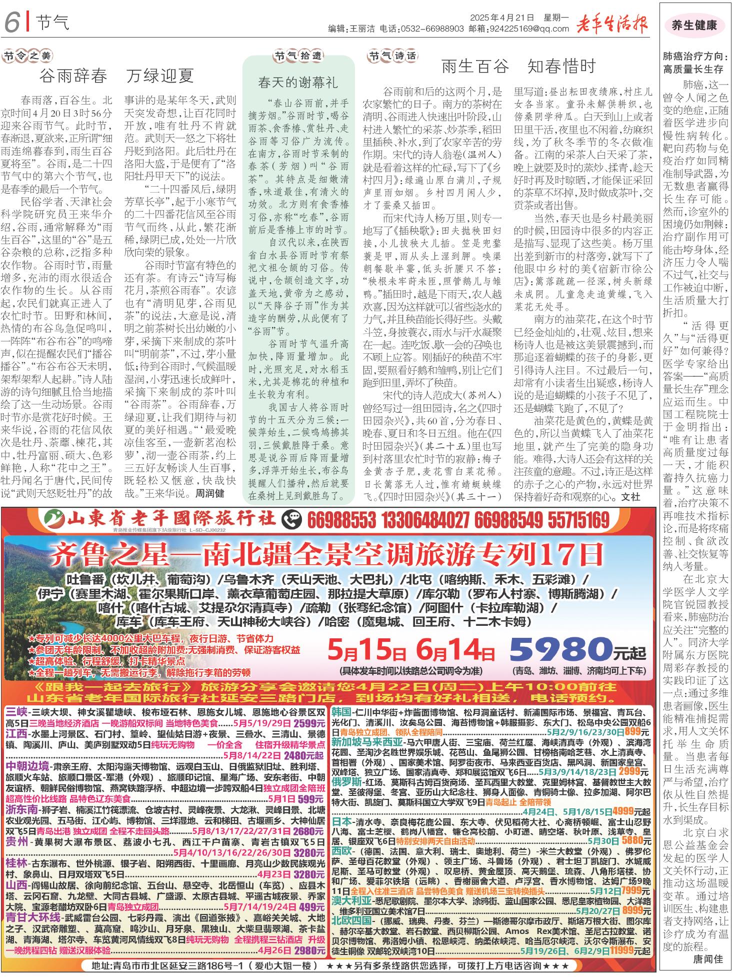 谷雨前和后的这两个月,是农家繁忙的日子。南方的茶树在清明、谷雨进入快速出叶阶段,山村进入繁忙的采茶、炒茶季,稻田里插秧、补水,到了农家辛苦的劳作期。宋代的诗人翁卷(温州人)就是看着这样的忙碌,写下了《乡村四月》:绿遍山原白满川,子规声里雨如烟。乡村四月闲人少,才了蚕桑又插田。