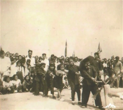 杨宝云小心翼翼地从手机中翻出一张泛黄的黑白照片,向记者展示。照片里,南马路(如今五四广场附近)人头攒动,群众们聚集在路边,五名小学生正在人前空地上表演儿童剧《拔萝卜》。“这张照片是我的一位同学拍摄下来送给我的,对我来说无比珍贵。”杨宝云眼中闪烁着光芒,陷入了深深的回忆。