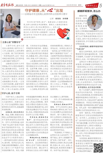 9月29日是“世界心脏日”。随着全球人口老龄化的加剧,各种心脏病发生率显著增加。据统计,心脏病是导致65岁及以上老年人死亡的主要原因之一。老年人该如何识别心脏病的“蛛丝马迹”,又该怎样有效应对,从而守护好心脏健康呢?为此,本报记者专访了青岛市市立医院心血管内科主任医师王晏平。