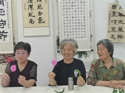 “这花瓣层层叠叠的,颜色又这么鲜艳,有红、粉、黄好几种,常常被用来表达爱意,大家来猜猜这是什么花呀?”“是不是玫瑰花呀?”近日,青岛市崂山区山水名园社区党群服务中心内欢声笑语不断,十余位“80后姐妹”银发互助队的队员们齐聚于此,高龄老人们在手工创作与故事分享中,传递着邻里间的浓浓温情。山水名园社区目前有80岁以上老人约110位。