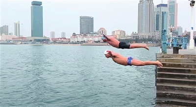 入冬以来,多地接连发生老年人冬季锻炼突发意外事件。记者近日走访发现,尽管气温持续走低,老年人锻炼热情不减,高强度运动者不在少数。但医学专家指出,冬季老年人运动时心脑血管意外风险显著升高。寒冬锻炼,如何掌握“分寸”?本报记者采访了相关专家。图1为清晨栈桥海边的跳水老人,图2为广场上锻炼的老年人群。