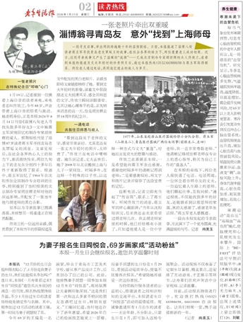 在本报的牵线下,两位老人很快通了电话。电话两端,一位怀念着亦师亦友的丈夫,一位追忆着人生路上的恩师。他们聊起往事,互致问候。“通过报纸,不仅能找到多年的好友,还能联系到以前恩师的家属,真的太感谢了,感谢老年生活报。”蒋玉军老人感慨道。