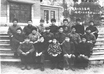 1977年,山东省赴唐山医疗器械检修小分队合影。蒋玉军(二排左二)、青岛医疗器械厂两位女同事(前排左二、左四)