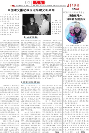 建交后不久,我方还着手解决加方原在南京的大使馆的财产和民生公司贷款等问题。由于我方准备充分,加方也很合作,通过友好协商,问题得到了合情合理的解决,加方悬在心头的几件事满意了结。事隔多年,当时经办这些案件的加驻华使馆政务参赞、法学家考皮松在温哥华同我见面时回忆说,当时双方既沿用国际上通用的一些做法,又充分考虑到实际情况,体现出互让互谅精神。加方也没有预料到问题会解决得那么顺利,中方的诚意和合作精神给他留下了深刻印象。