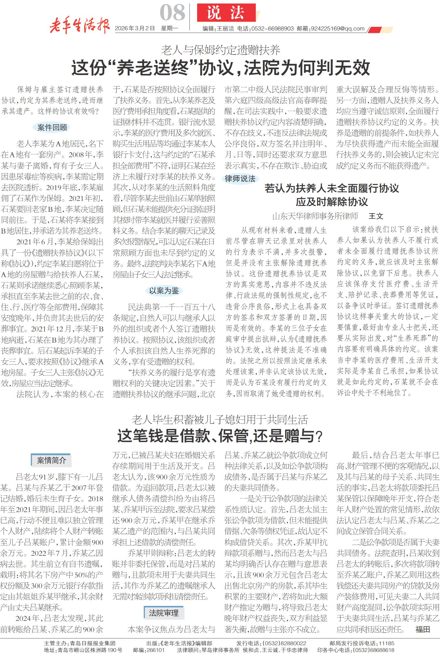 这份“养老送终”协议,法院为何判无效