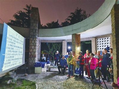 今年68年的戚务慧的夜生活更加绘声绘色。5月20日晚上7点许,随着一曲《天边的骆驼》音乐响起,戚务慧在北岭山森林公园开启了她一天最快乐的时光,“上山唱歌的感觉真好,每天我都盼着晚上来,不仅空气好,还能练习一下白天学的歌曲。”戚务慧说,“我来8年了,除了下雨不来,每天晚上都来。”