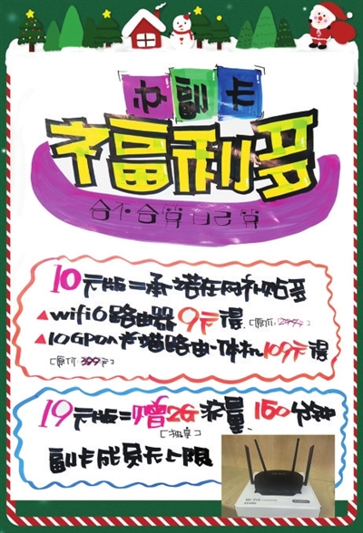 福利二,办副卡福利多,现在办副卡也有优惠啦!全家共享仅花一份钱,承诺在网即可享受补贴,可9元得wifi6路由器,或者109元的10GPON光猫路由一体机,符合条件即可享受补贴!