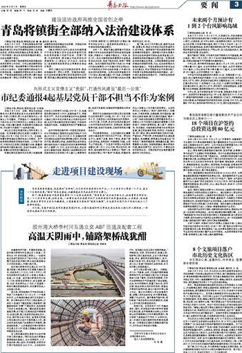 开栏的话项目是投资的载体,是发展的“生命线”。今天的项目就是明天的产出。一个大项目可以带动一个产业、甚至一个区域的发展。“搞活”青岛这座城,关键要落在实实在在的项目支撑上。