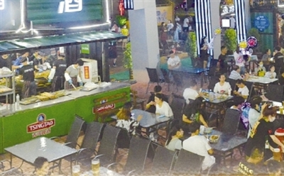 ■啤酒节崂山会场“啤酒花园”人气旺。
