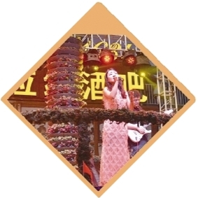 除歌舞表演外,纯音乐表演也不在少数,萨克斯、二胡在不同的花园里轮番上阵,演奏出《赛马》等经典曲目;还有歌手一边演唱《粉墨人生》,一边拿出画笔在脸上勾勒京剧脸谱,一曲唱毕,花样已成,迎来满堂彩;主持人在串场之余,也起到半脱口秀表演的性质,一些花园还安排了点歌、品饮助唱等互动环节;还有花园按照酒吧格局布设,分出室外舞台和室内清吧,喜欢清静的顾客也可以在室内聊天、休闲。