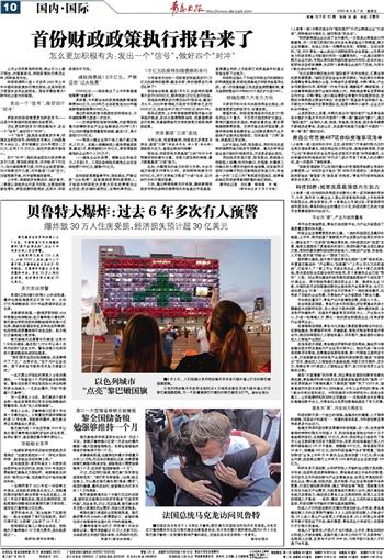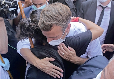 ■法国总统马克龙于6日抵达贝鲁特。黎巴嫩与法国政治和经济关系紧密。马克龙在贝鲁特爆炸发生后与黎巴嫩总统奥恩通电话,表示将向黎方提供援助。图为8月6日在黎巴嫩贝鲁特一处受爆炸影响严重的街区,法国总统马克龙拥抱一名青年。新华社照片