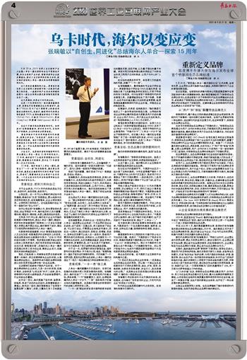 新时代品牌如何变革?张瑞敏表示:“传统工业时代,企业要么成为世界品牌,要么为世界品牌代工;移动互联时代,企业要么拥有平台品牌,要么被平台品牌所拥有;而在物联网时代,企业要么转型为生态品牌的引领者,要么成为生态品牌的合作方。”