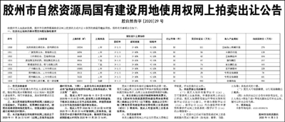 胶州市自然资源局国有建设用地使用权网上拍卖出让公告