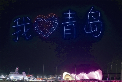 ■创新节期间,500架无人机点亮青岛夜空。 韩 星 摄