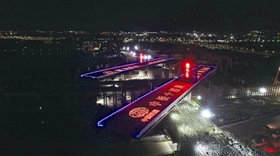 本报11月4日讯 深秋浅冬寒意渐浓。3日晚11点半,随着现场指挥长的一声令下,由青岛市政府投资,中铁十四局承建的青岛新机场高速连接线工程跨铁路转体桥开始缓缓转动,现场50余名工作人员紧张而有序地进行技术操作和精度测量等工作。历时90分钟,双幅桥体在同步平转90度后,精准就位。作为全线控制性节点工程,它的成功转体,意味着青岛新机场高速连接线建设取得了里程碑式的突破,为冲刺全线贯通打下了坚实基础。