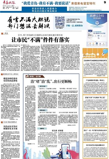 ●停水问题。多位市民反映:城阳区仙山东路阳光美寓小区、莱西市望城街道辛庄村、即墨区黄河二路和平家园小区停水现象频发,影响居民正常生活,要求相关部门尽快解决。