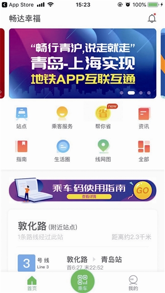 2019年5月15日,青岛地铁与上海申通地铁就二维码乘车实现互联互通。乘客可使用“青岛地铁”APP乘坐上海地铁,或使用上海地铁“Metro大都会”APP乘坐青岛地铁,无需额外下载APP,方便乘客异地出行乘车,提升了服务体验。