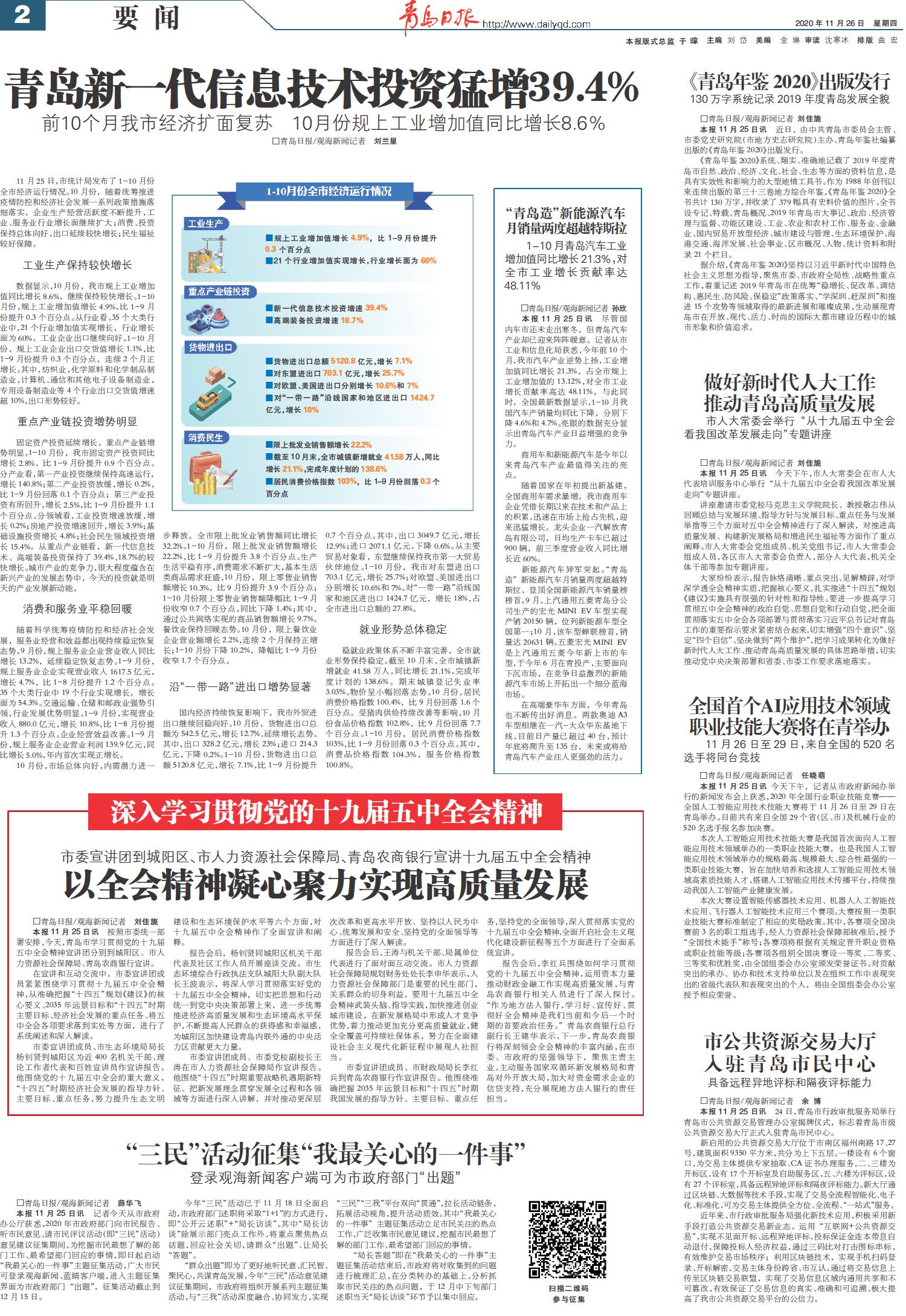 青岛新一代信息技术投资猛增39.4%