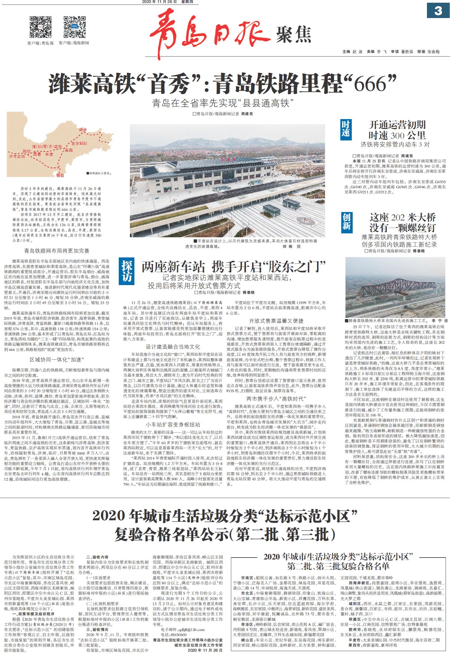 潍莱高铁“首秀”:青岛铁路里程“666”
