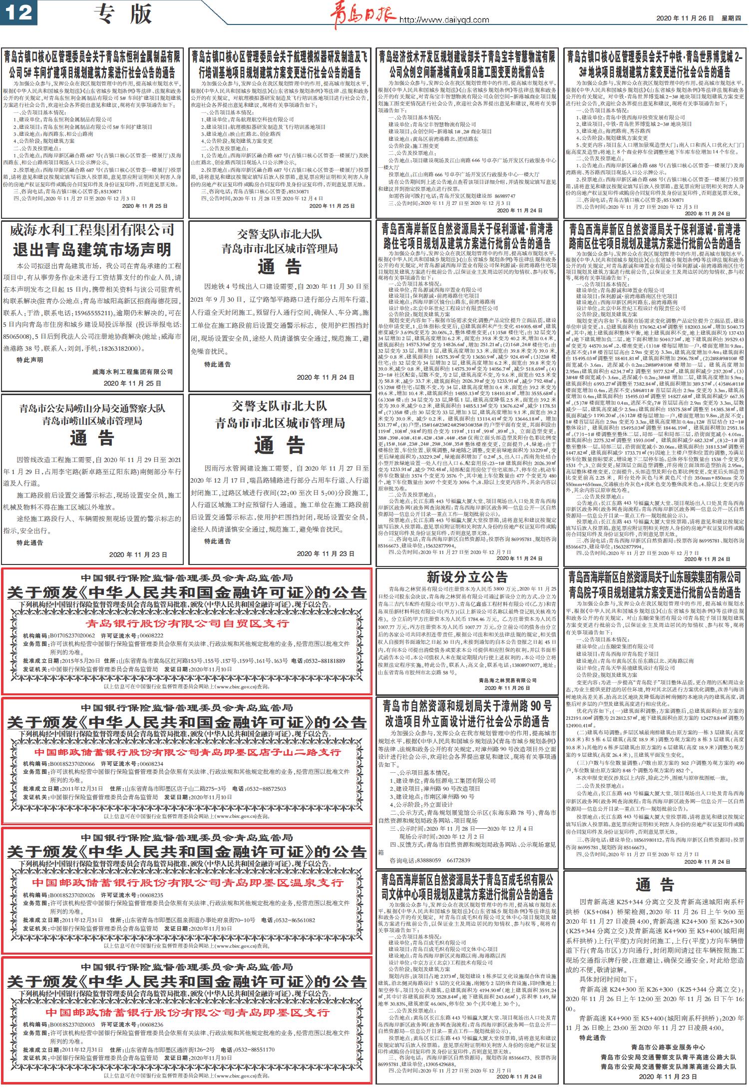 青岛西海岸新区自然资源局关于青岛百成毛织有限公司文体中心项目规划及建筑方案进行批前公告的通告