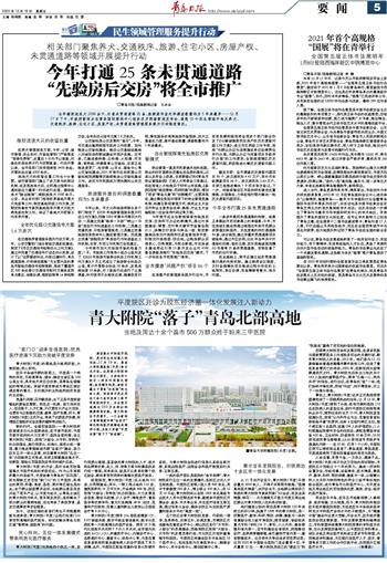 建设高水平的医疗机构,是对民生关切最大的回应。12月19日,青岛大学附属医院(平度)将正式开诊。这是青大附院的第五个院区,与其他四个院区一样实行同质化管理。备受瞩目的是,该院区矗立于青岛“后花园”的生命之洲,将结束平度及周边十余个县市没有三级甲等医院的历史,为这些区域超过500万名群众的健康保驾护航。青大附院在平度落子,一个全新的与青烟潍城市群“会客厅”相匹配的医疗保障格局雏形乍现,为助力突破“平度攻势”按下了“快进键”。