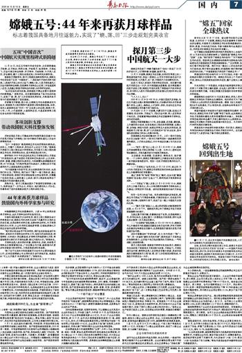 日本共同社17日报道说,中国成为继美国和苏联之后第三个采集月球土壤的国家,这也是人类时隔44年再次成功采集到月壤。中国正朝着太空强国的目标积累技术和经验。