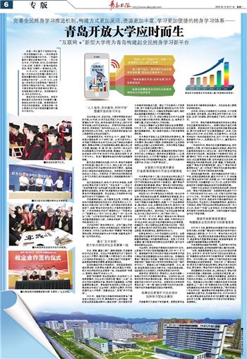 在加快建设开放大学进程中,学校紧紧围绕区域发展战略,扎根青岛办教育,通过共建五大学院,把大学办到经济社会发展第一线,为岛城培养“用得上、留得住、接地气”的本土人才。