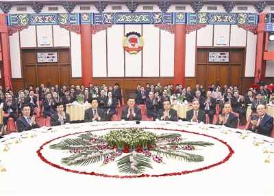 12月31日,全国政协在北京举行新年茶话会。党和国家领导人习近平、李克强、栗战书、汪洋、王沪宁、赵乐际、韩正、王岐山出席茶话会并观看演出。 新华社照片