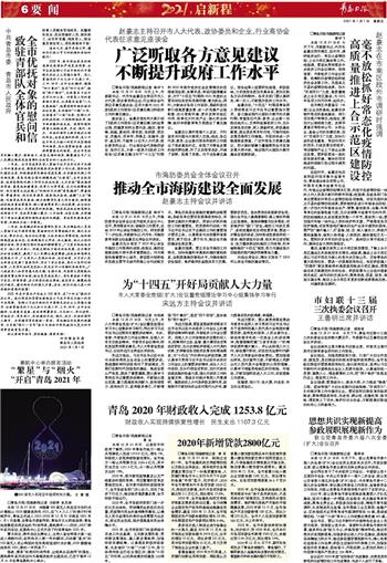 本报12月31日讯 今天下午,市委副书记、代市长赵豪志到市南区、胶州市,调研经济运行、常态化疫情防控、上合示范区建设等工作。他强调,要坚决贯彻落实中央经济工作会议精神,按照省委、市委经济工作会议部署,统筹抓好疫情防控和经济社会发展工作,巩固来之不易的疫情防控成果,加大“双招双引”力度,高质量推进上合示范区建设,为2021年各项工作开好局、起好步。