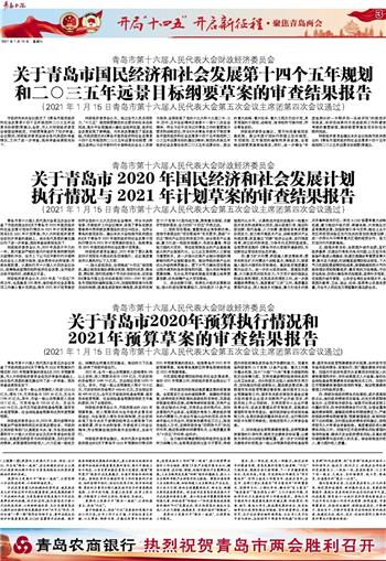 财政经济委员会建议本次会议批准市政府提出的《青岛市国民经济和社会发展第十四个五年规划和二○三五年远景目标纲要(草案)》。