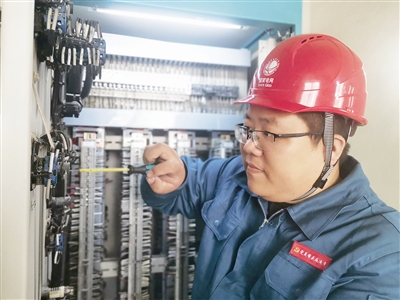 ■汤磊主要负责青岛市178个站点的二次设备检修工作。图为汤磊正在检修设备。