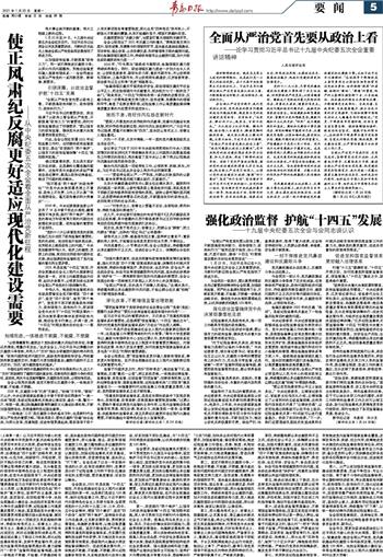 旗帜鲜明讲政治,既是马克思主义政党的鲜明特征,也是我们党一以贯之的政治优势。在十九届中央纪委第五次全体会议上,习近平总书记强调全面从严治党首先要从政治上看,不断提高政治判断力、政治领悟力、政治执行力。