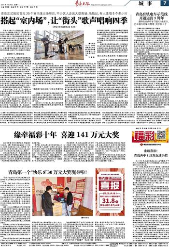 张学娟还会充分利用每次的“快乐8”活动向彩民们宣传这款游戏,每次都能达到很好的效果。比如最近青岛福彩开展的“快乐8”促销活动中,她也是趁着活动重点宣传了一番“快乐8”游戏,效果十分显著。在活动期间,站里的“快乐8”销量翻了一倍还多,很多原来一直没有购买过“快乐8”游戏的彩民,最近也会买上一张“快乐8”彩票,尝鲜新游戏收获新快乐。