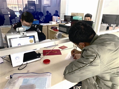 ■户籍业务办理窗口,申请人员正在办理相关落户手续。 傅春晓 摄