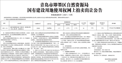 青岛市即墨区自然资源局国有建设用地使用权网上拍卖出让公告