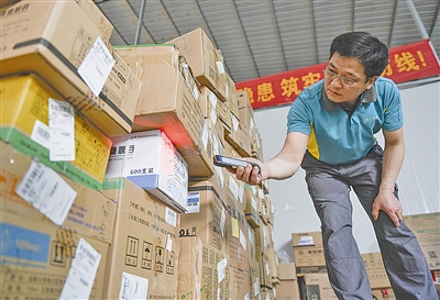 ■在湖南省道县邮政快递分拣中心,工作人员在扫描快递(5月1日摄)。新华社照片
