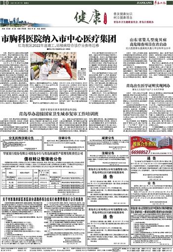 2020年11月27日,青岛市卫生健康委决定将青岛市胸科医院纳入青岛市中心医疗集团统一管理,成立青岛市中心医院北部院区,借助集团化的人才、技术、学科和品牌等优势,进一步优化优质医疗资源扩容和区域均衡布局,推动公立医院高质量发展,带动北部医疗水平持续提升,满足周边60万居民日益增长的健康需求。5个月来,两院区加快融合发展力度,合理配置内部优质资源,优化院区功能布局,积极推进管理同质化、业务同质化、服务同质化。