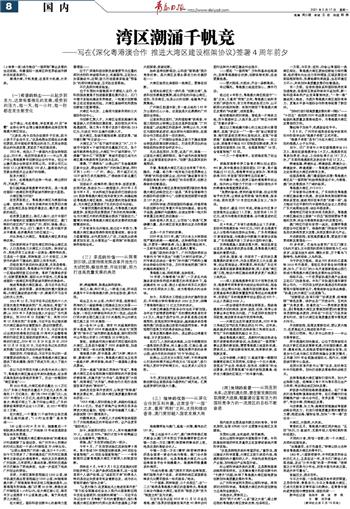 经过近4年努力,粤港澳大湾区既坚守“一国”之本,又善用“两制”之利,粤港澳三地和有关部门积极作为,有力有序推进各项工作,以不断深化的规则衔接、机制对接按下粤港澳大湾区发展的“快进键”,成效显著。