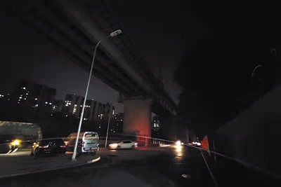 ■上图:镇平路上过往车辆不少,但路灯却都不亮。