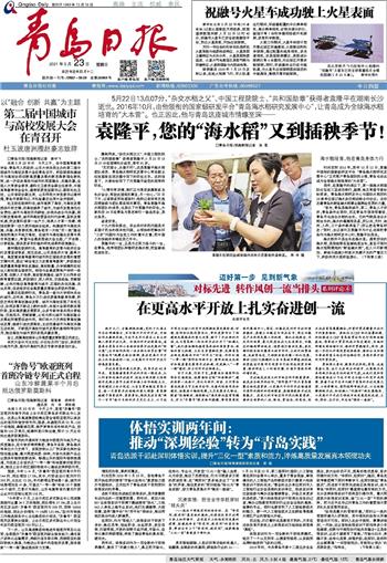 袁隆平曾表示:“我有两个梦想,一个禾下乘凉梦,还有一个杂交稻覆盖全球梦。”在青岛,时下,海水稻正在进行育秧,月底插秧将陆续开始。我们遥祝袁老一路走好,也一定会精心培育呵护好老人在青岛播撒下的“海水稻”种子,让它们茂盛勃发!
