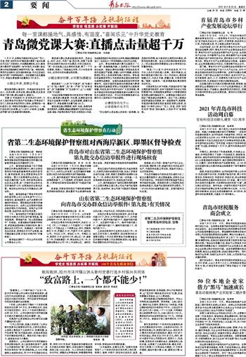 本报5月22日讯 5月21日下午,省第二生态环境保护督察组组长李峰带领督导组到西海岸新区和即墨区现场督导检查生态环境保护工作。